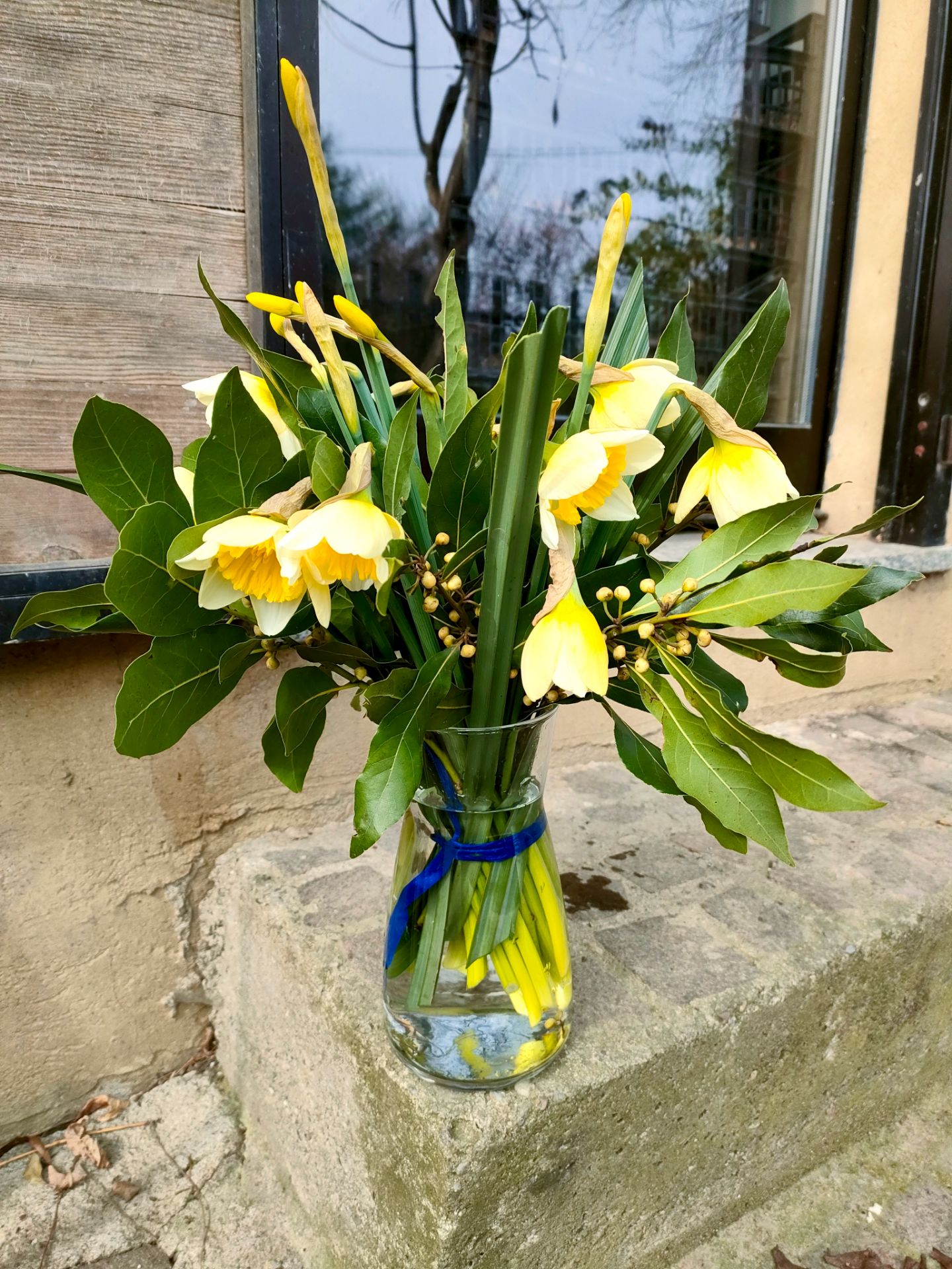 Mazzo di narcisi e alloro